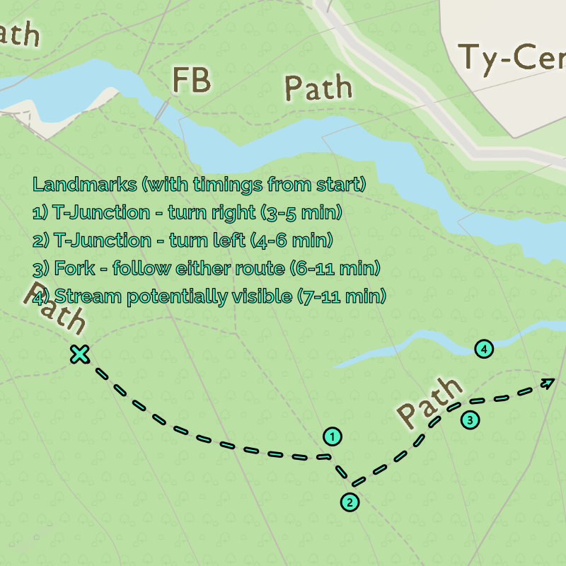 Funnily enough, our memories can be flawed or miss bits and using the information I mapped out above this walk is slightly wrong but it does get me to the correct location and that is all that really matters. By chaining together any little details you may have about the route so far you can quite easily figure out where you are on the map. But how can you be certain? Ideally, there is a nearby landmark that will confirm your location, but if not the paths themselves can hopefully be of some guidance; in our previous example we were stood at a crossroads, so finding one on the map where we expect it to be is a pretty good clue, but if we didn't have that, what can we do? Well, while not perfect paths will generally curve and turn on the map roughly as they would in real life, they should also show alternative paths and crossroads, so consider picking a route and following it for a while and seeing if it lines up with the map you have with you. Going back to our example, we are stood at the crossroads but we want to be absolutely certain we are in the correct path? Well, we can see that if we turn left there is a short path that circles around and will bring us right back to our current location via the waterfalls we saw earlier. A short detour, but by using it we can absolutely confirm that the location we have is correct! Of course, you might not have such a perfect option especially if you are on one path with no joining paths, but find something on the map nearby that stands out and see if you can find it.